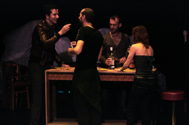Drôle d’objet que ce 8760 heures, mis-en-scène par Alexis Armengol. Inclassable, certes, hybride, entre théâtre, musique et quelque chose du sketche télévisuel… Un « concert de théâtre », sacrément enlevé, rafraîchissant. Pourtant, au travers du prétexte de l’argument -une année de la vie de Yvan M., personnage fictif puisque multiple, racontée par un collage de fragments et de réminiscences, 8760 heures exactement- émergent quelques images dures, le sujet douloureux du Sida, la maladie et la mort.