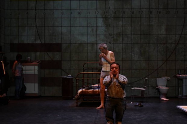Ce qui est remarquable dans cette oeuvre est que jamais le traitement théâtral d’Alcaraz n’est outrancier. Ses comédiens sont comme des mages, portant la parole des mots et des corps d’une seule voix multiple, soudée à l’ombre tutélaire des Oiseaux. Impressionnante élégance de jeu de l’excellente Isabelle Provendier, dont la palette maîtrisée s’accroît de rôle en rôle. Une présence étonnante, comme l’est celle de Laurent Bréchet, en père monstrueux, qui joue de son apparence hors-norme comme d’un antidote à nos peurs les plus enfouies. Très belle création lumières également, simplement juste, que celle de Damien Gandolfo, tout comme le travail vidéo accompli de Marie Jumelin. Et un Alcaraz qui a resserré sa mise en scène à l’essentiel, dépouillant de tout superflu sa scéno, particulièrement efficace, et sa direction d’acteurs, limpide et cohérente.