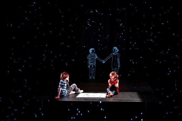 Le travail de Cyril Teste cependant, s’il maîtrise parfaitement ces nouvelles technologies, ne tombe jamais dans la démonstration gratuite, souvent inhérente à ce type d’oeuvre hybride. Au contraire, sa très grande attention aux deux -très- jeunes comédiens, cette complicité palpable entre le metteur et ses machines d’une part, et ces deux enfants -remarquables, soit-dit en passant- d’autre part, libère une émotion certaine. Peut-être cet univers si particulier de l’enfance renvoie t-il à d’intimes vécus… Toujours est-il que l’empathie passe, malgré ou grâce à cette technologie impressionnante qui aurait pu tout cannibaliser.