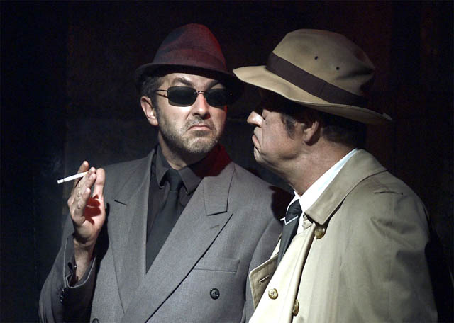 75 minutes, où l’on assiste entre autres à une enquête, menée par un détective privé chargé de retrouver Dieu !!! Oui Dieu, nous allons avec lui parcourir les bas-fonds de New-York, pour nous retrouver dans un restaurant italien où l’on rencontrera le Pape en personne, se goinfrant d’un plat de spaghetti, dont il n’arrive pas même à se « dépatouiller », encerclé d’une nonne au gros calibre, le tout agrémenté d’une vulgaire chanson nous énumérant les différentes variétés de pâtes !Tout ça, pour aboutir tant bien que mal au triste constat que… Dieu est mort !!! Forcément, on ne s’étonne pas que certains quittent la salle avant les applaudissements…