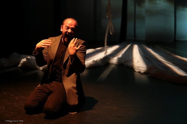 Se déroule alors sur l’écran du rideau de fond de scène, le générique du film tourné à Berlin en 1987 par Wim Wenders, avec en ajout les mentions de l’adaptation théâtrale de 2017 que l’on doit à un certain Gérard Vantaggioli avec, dans les rôles des acteurs, ses quatre comédiens.