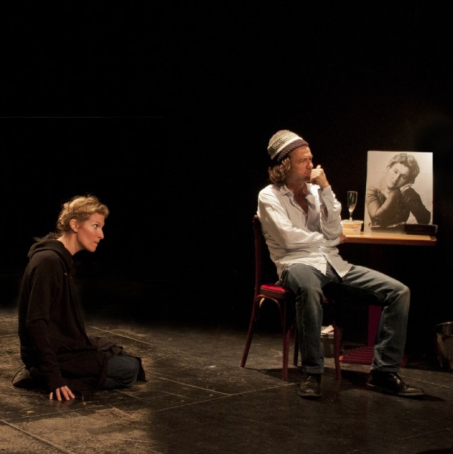 Sur scène la comédienne Rafaéle Huou interprète brillamment l’ensemble des rôles, Tchekhov, sa femme, une des comédienne de la Cerisaie qui donne la réplique à un Philippe Mangenot qui s’octroie le luxe de sortir de son rôle de metteur en scène pour déchirer de par les gradins le quatrième mur et devenir, le temps d’une scène, un Platonov qui prend à partie les spectateurs dans des moments franchement drôles. Ces allers-retours incessants, loin de perdre le spectateur, apportent une certaine humanité à cet homme que l’on a surtout l’habitude de côtoyer au travers de ses œuvres.