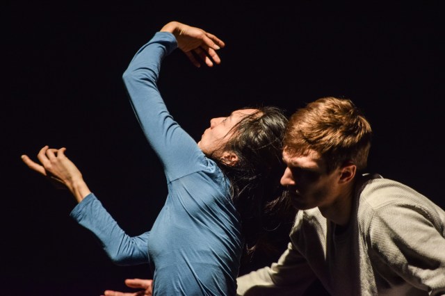 Une éloge à la lenteur et à la douceur ! Les trois danseurs, Félix Héaulme, Edouard Hue et Erin O’Reilly suspendent le temps tout comme la lampe qui éclaire et fragmente leurs corps. La pièce évolue crescendo. Tout commence par une chorégraphie aérienne qui plonge le spectateur dans un état méditatif ; les corps des danseurs à la gracieuse souplesse s’entremêlent et se frôlent jusqu’à faire perdre toute notion anatomique, telle une déconstruction du corps. Dans une quasi obscurité, propice à l’introspection, les gestes sont suaves et millimétrés. Puis la musique s’intensifie, une danse en » surplace » laisse les corps se déployer peu à peu jusqu’au contact. Ils combattent, se disputent l’espace. La chorégraphie renvoie soudain à un art martial, mais toujours en douceur…en compromis ? Bref, le tout jeune Edouard Hue (25 ans) signe, ici, une prouesse chorégraphique emplie de grâce et poésie. Les danseurs ne seront pas les seuls à sortir de leur enveloppe charnelle et à entrer dans un univers parallèle ; une sensation d’apesanteur émanera de chaque spectateur : magique…