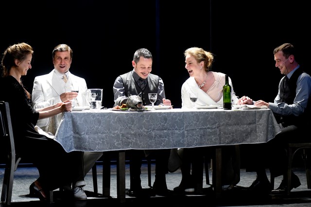 Face à ces thèmes forts proposés, j’ai cherché, en vain, un petit accroc dans ce scénario bien maîtrisé, une faille perceptible chez les personnages, la mise sous tension provoquée par ces situations. Ce petit grain de sable qui fait perdre un peu de « beau » mais donne du relief et de l’émotion. Mais rien ! Tout se déroule sous le même rythme et avec la même esthétique, comme s’il fallait absolument ne montrer que la part belle de l’histoire, oublier la laideur pour ne présenter que le beau. La volonté de l’auteur/metteur en scène était de traiter le sujet sans pathos et par la comédie, Soit ! Mais, même sous un registre humoristique, la tension ne devrait-elle pas être palpable, voire même insoutenable ? Au fond de mon siège je me suis demandée « où était la guerre dans laquelle les familles Haffmann et Vigneau sont plongées ? », « où étaient la peur et le courage dont parle Monsieur Haffmann? », « où était l’antisémitisme et la menace qui pèse sur les juifs, au cœur du propos ? », « le déchirement, l’absence des siens, l’attente… ? ».