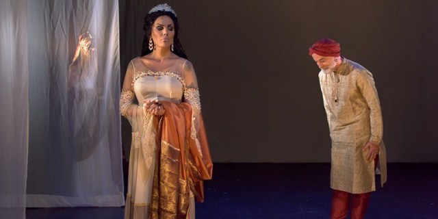 Dans un décor épuré, des grands voiles blancs aux deux extrémités de la scène tout au fond une grande toile blanche où la silhouette de Bérénice apparaît dans un clair de lune pleine.
