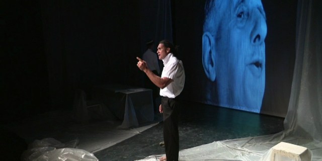 La mise en scène met en œuvre ici encore de la vidéo, mais juste pour mettre sous nos yeux des images d’archives qui parlent d’elles mêmes et des hommes politiques dont le discours fait froid dans le dos tant il paraît détaché des réalités et des préoccupations des polynésiens. Les trois comédiens : Tepa Teuru, Tuarii Tracqui et Guillaume Gay interprètent avec justesse tous les rôles, allant du colonel sans scrupule aux tahitiens hésitant entre la peur et la conscience de faire un travail pour l’armée allant à l’encontre des intérêts profonds de la Polynésie, mais contrebalancés par le désir d’une vie tournée vers un mode de vie occidental.