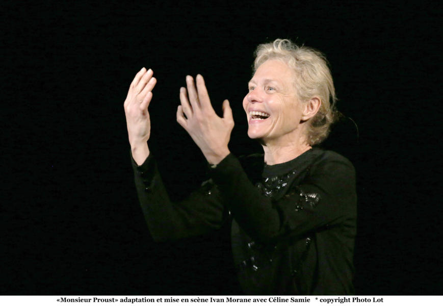La comédienne interprète avec justesse et délicatesse tous les rôles et tous les sentiments. Passant de Céleste à un Proust rêveur ou encore à un hilarant couple Gide ne sachant plus comment s’excuser de ne pas avoir publié « Du côté de chez Swann ». Céline Samie s’amuse avec ce texte et cela transparait, sa longue silhouette sied à merveille et ses longs bras semblent enlacer sans jamais le toucher un Proust malade, affaibli mais avec des yeux d’une infinie bienveillance.