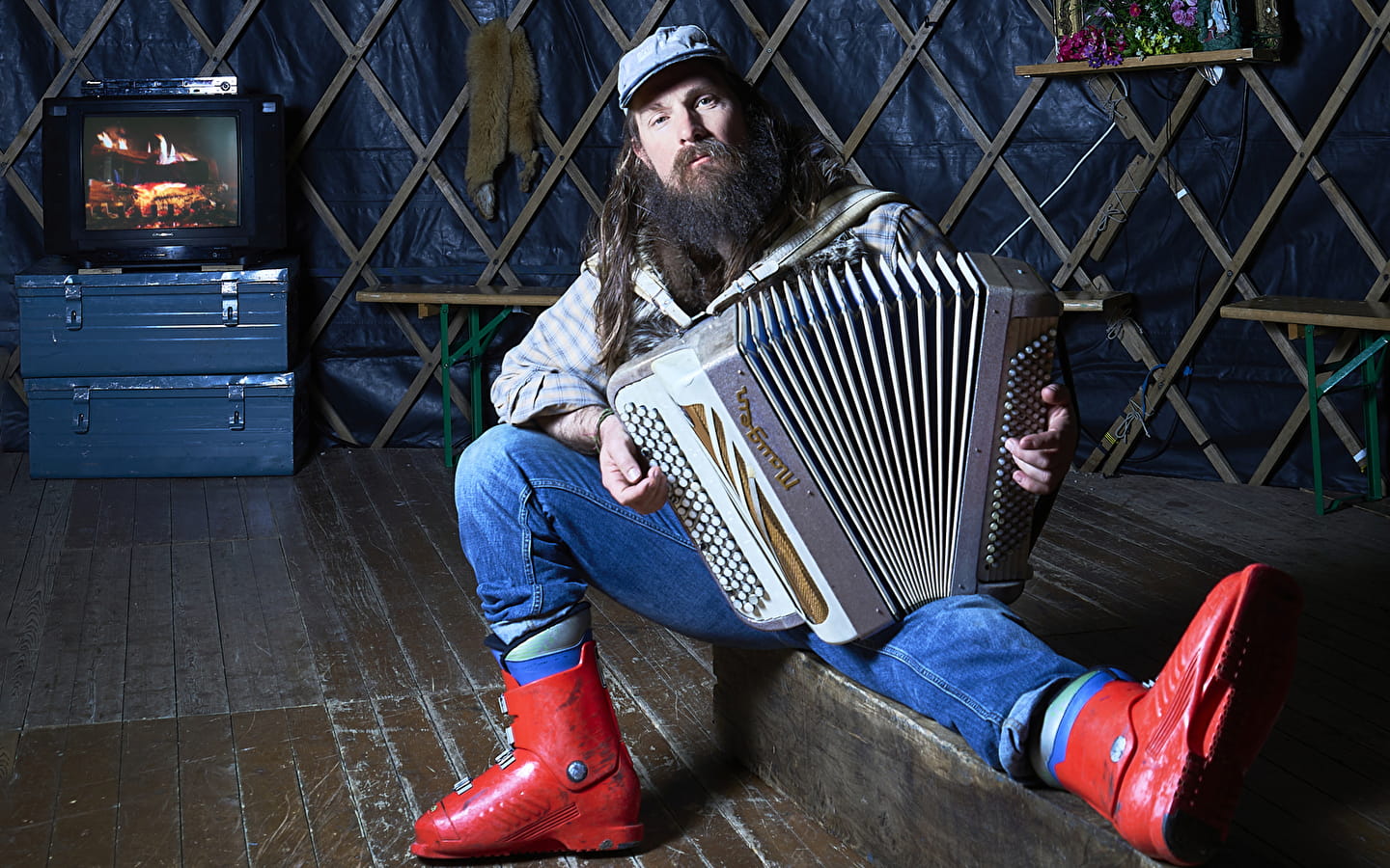 Alors ce trappeur-cueilleur étonnant nous raconte ses histoires, ses mondes, il chante, il tourne, il sort de la yourte, il revient : jamais vraiment au centre. Et c’est beau de voir cette figure si subtile prendre forme et gagner peu à peu ses contours.
