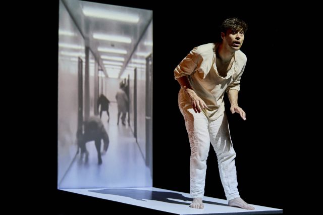 C’est au travers de son expérience de médecin qu’Alain Planchon a écrit l’histoire de Caspar, schizophrène ayant assassiné un frère violent qui abusait de lui et qui va se retrouver en hôpital psychiatrique dans les années 70. Sur scène pas de décor si ce n’est un espace blanc tout à la fois cellule d’enfermement et lieu imaginaire dans lequel Caspar vit.