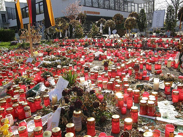 Image : devant le collège d’Emsdetten, le lendemain du massacre / Photo DR