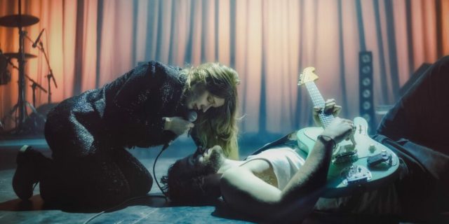 Une caméra sur scène permet de prolonger l’espace en projetant à l’écran close up et flashbacks. Les lumières sont travaillées, l’univers du groupe rock, d’une chanson à texte puissante se retrouve de manière crédible. Le lien avec le public, devenu acteur à part entière de la pièce puisqu’il est là pour faire vivre le concert rock en se manifestant, est entretenu, avec un vrai échange. Mathilde-Edith Mennetrier a une voix profonde et émouvante, les paroles des chansons font le lien entre Arianne, sa mythologie, son histoire personnelle. C’est beau, prenant et surprenant. Un vrai régal !