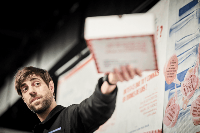 KILLT pour Ki Lira le texte ? Le texte, « Mauvaise pichenette », écrit par Magali Mougel, est une courte pièce saisissante. Le dispositif imaginé par Olivier Letellier et Camille Laouénan propose au public une lecture collective à haute voix. Et le miracle ce produit : chacun s’exprime, trouve son moment et devient acteur du texte en donnant la réplique au comédien. Les répliques s’enchainent avec une fluidité étonnante, Le texte se niche entre quatre murs, dans les recoins les plus reculés, derrière les objets. Une musique accompagne les moments forts. Le comédien guide le regard du public, et ce voyage oculaire maintient l’attention en alerte.