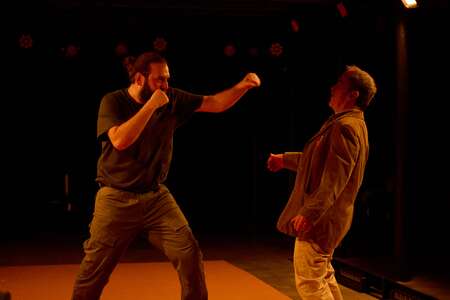 Les deux comédiens s’adresseront l’un à l’autre avec une sincérité inédite, leurs propos touchants et justifiés de tous côtés ne sauraient laisser le public indifférent. La complexité des relations humaines se déroule sous nos yeux, les non-dits, les rancoeurs, les paroles involontaires aux traces indélébiles, qui peuvent mener à construire des individus révoltés dotés d’un esprit vindicatif envers la société.
