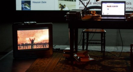 FESTIVAL D’AVIGNON : 33 Tours et quelques secondes de Lina Saneh et Rabih Mroué / a été donné du 8 au 14 juillet 2012 au Gymnase du Lycée Saint-Joseph / article publé initialement sur INFERNO Magazine. Voir 33 tours est une expérience inédite et surprenante. Les deux artistes libanais ont en effet produit une oeuvre hybride, ni théâtre ni installation, dont la première qualité est de proposer une théâtralité sans présence humaine. Une pièce entièrement confiée aux machines donc, écrite et pilotée depuis la … Lire la suite